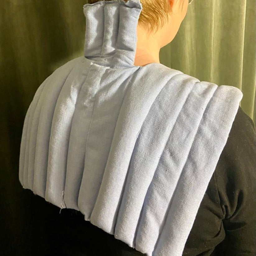 Upplev hur skönt denna handsydda unika vetekudde värmer både nacke, axlar och rygg. Den är handsydd i fin linnetyg och fylld med vete. Värm i micron. Handsydd av Kiran som är en fantastisk kvinna från Indien!